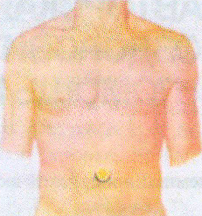 Снимаем информацию во 2-м режиме излучателем желтого цвета с области поджелудочной железы (справа от пупка) и оставляем там же на 8-12 часов. Продолжительность 7-10 дней.