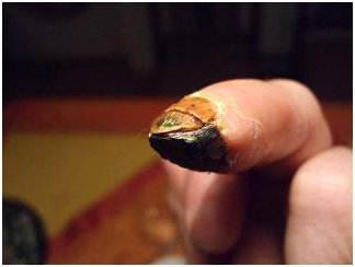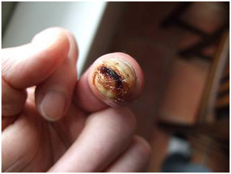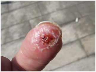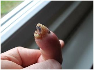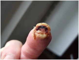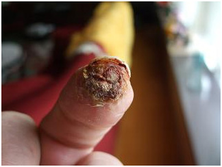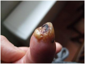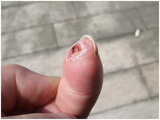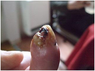 Травма произошла в феврале 2009 года. Работая на фуганке мужчина отрубил часть фаланги, врачи отрубленный кусочек пришили. Основная терапия по восстановлению проходила с использованием прибора СЕМ ТЕСН.