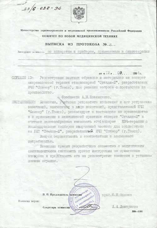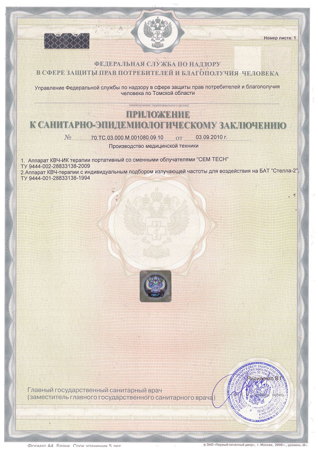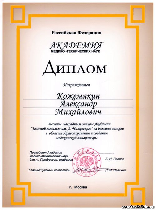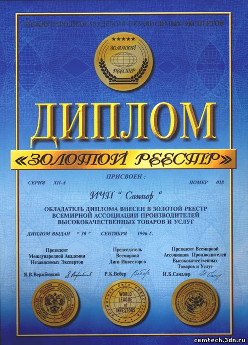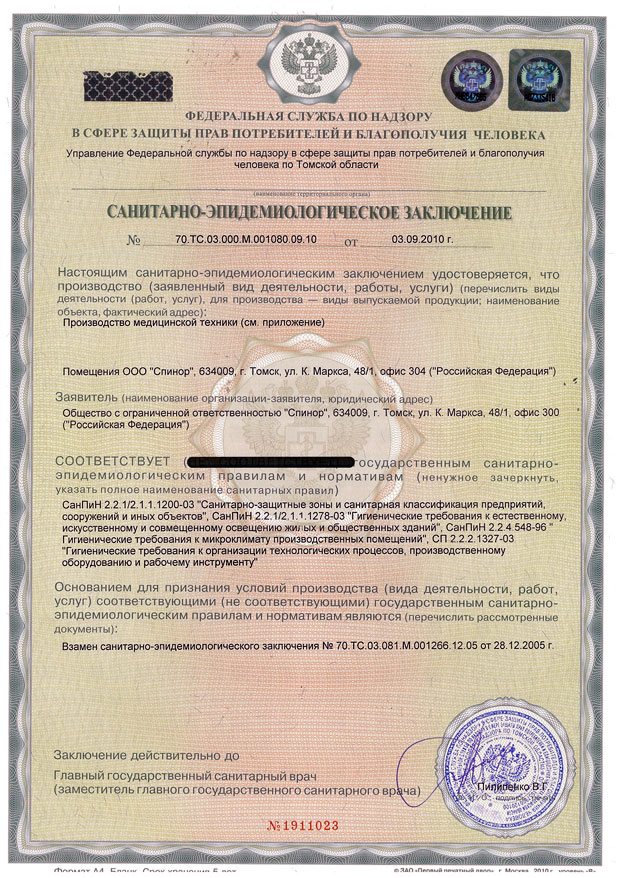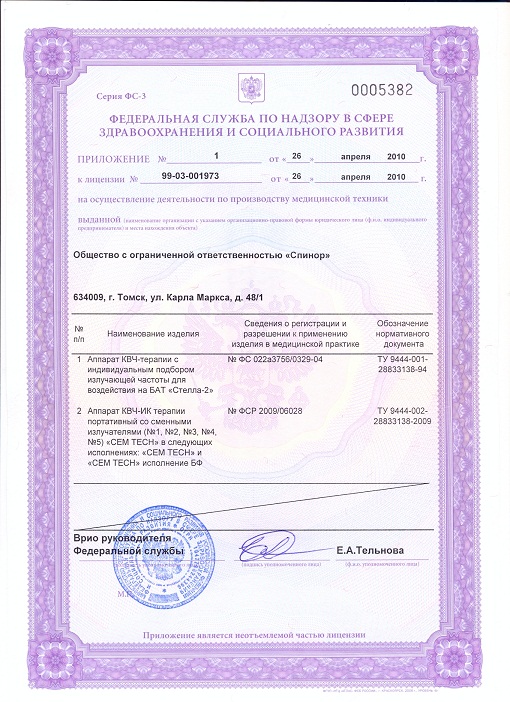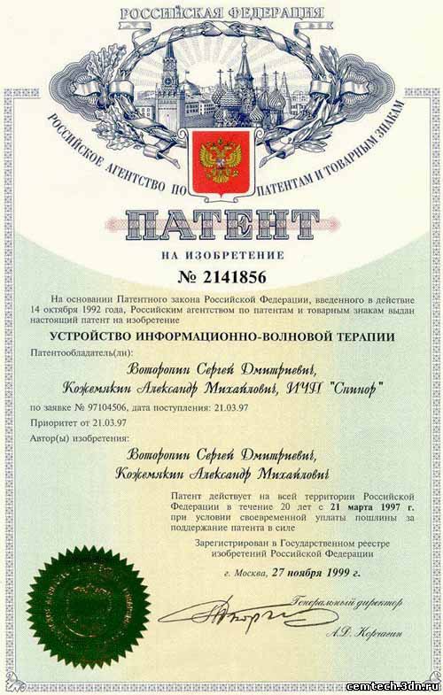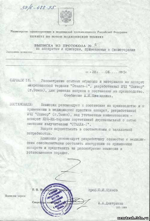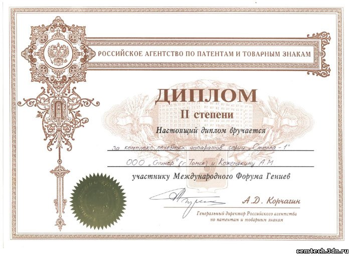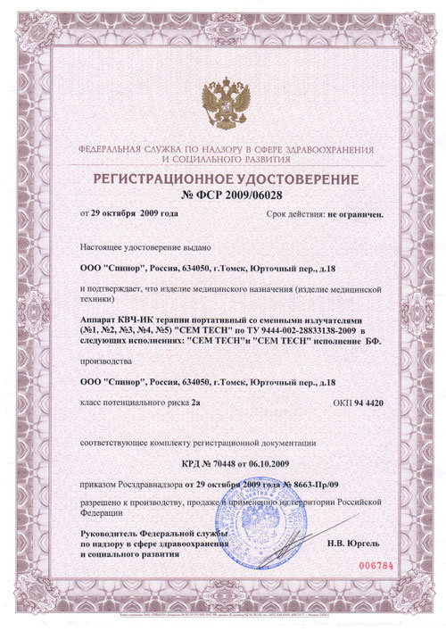 ЕС - Сертификат - система гарантии качества продукции Институтом EUROCAT подтверждено, что производитель ООО «Spinor» (Россия, г.Томск), медицинский аппарат "CEM®TECH" (портативный аппарат со сменными излучателями класса IIa) удовлетворяют требованиям в соответствии с приложением №6, раздела №3 Директивы 93/42 ЕЕС. Этот документ дает основания продвижению технология с использованием аппаратов серии "CEM TECH" на Европейском рынке, и долгожданную возможность использования в медицинской практике мед. учреждениям в странах ЕВРО-содружества.